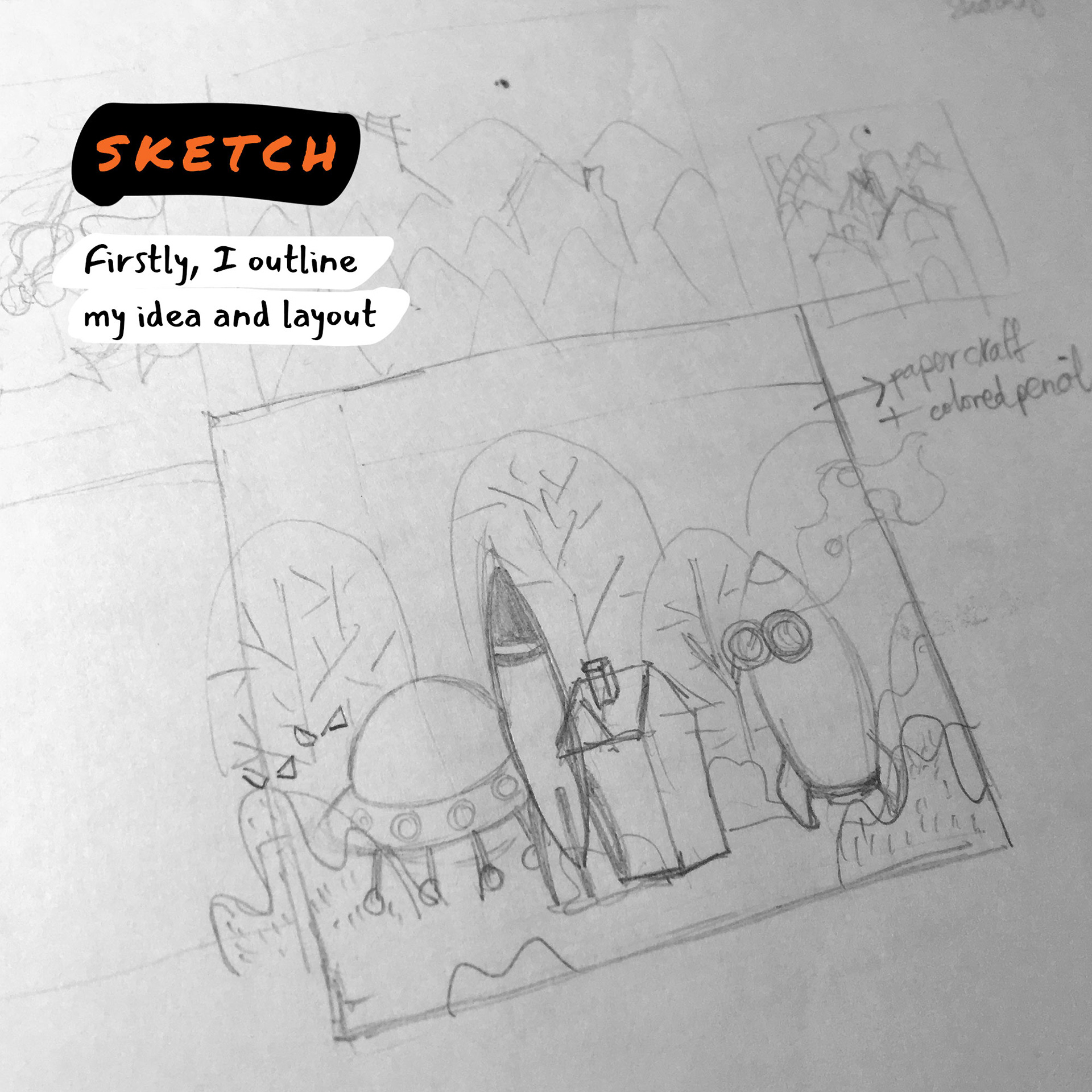 At first a rocket was about to launch but then I wanted to make a surprise and let the house go instead. I was quite happy with this funny result.