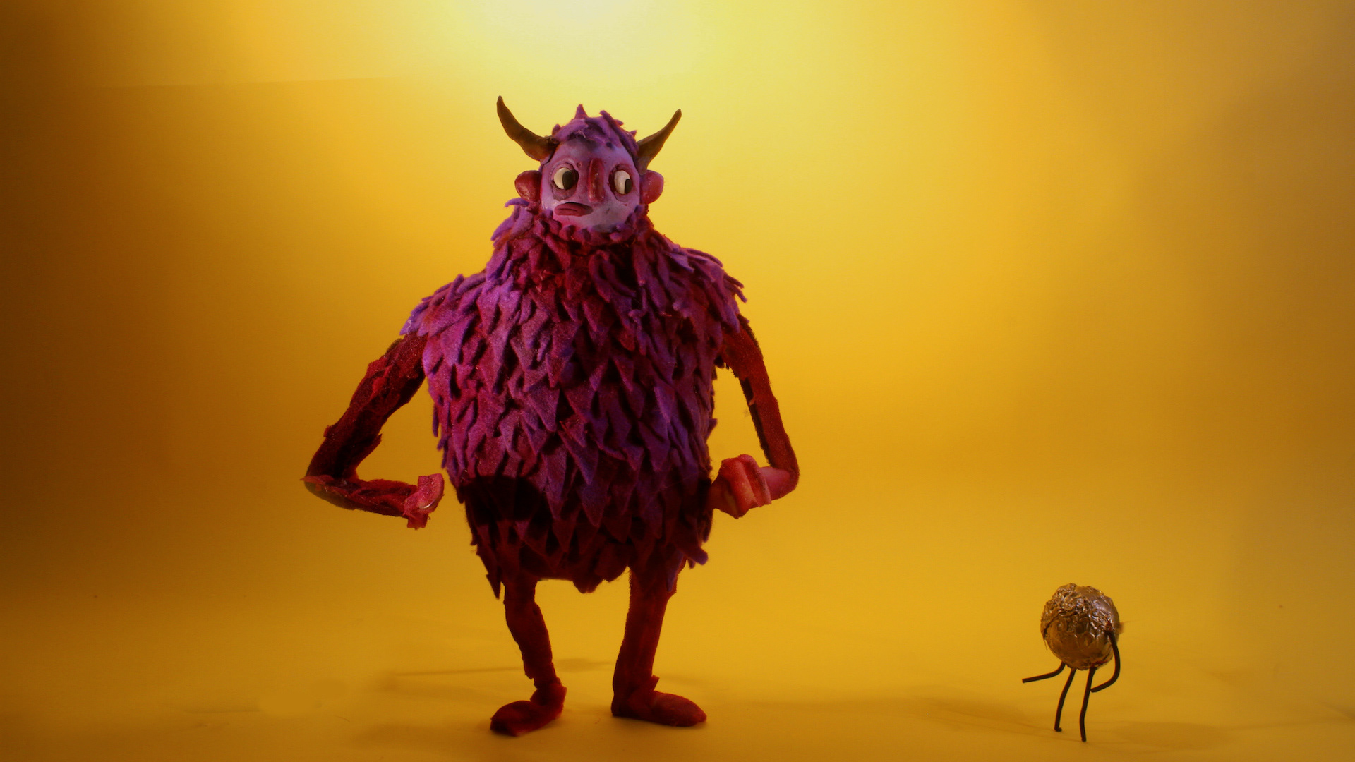 "I had a ton of fun animating these two drastically different puppets. The big purple yeti was a character I've been drawing different versions of for years, so to get to finally build and animate him for this little short film was a dream come true. He was a bit of a challenge though, because of his flimsy armature (his arm broke during the very last shot!)