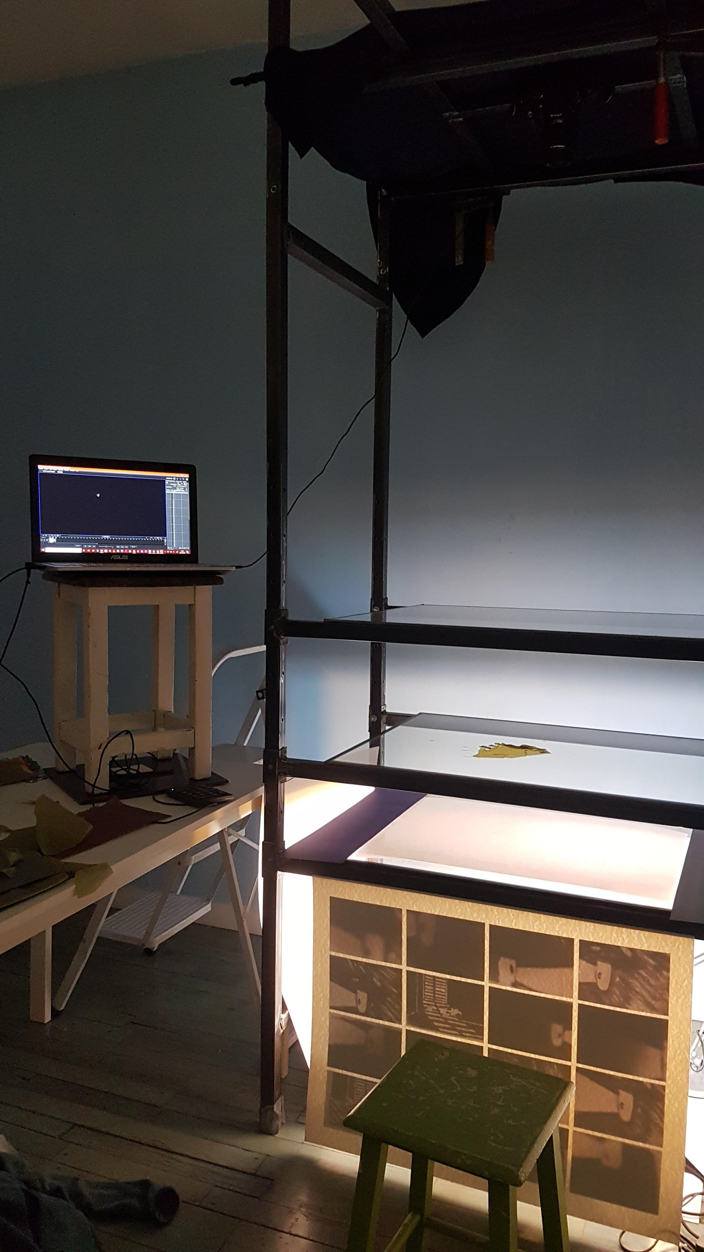 "Luckily my father and I builded a down shooter stage (rostrum or banc-titre) in my bedroom just before quarantine. My room became more of a messy studio suddenly! I had enough materials at home to create, so it was a perfect moment to develop an old technic. ⠀