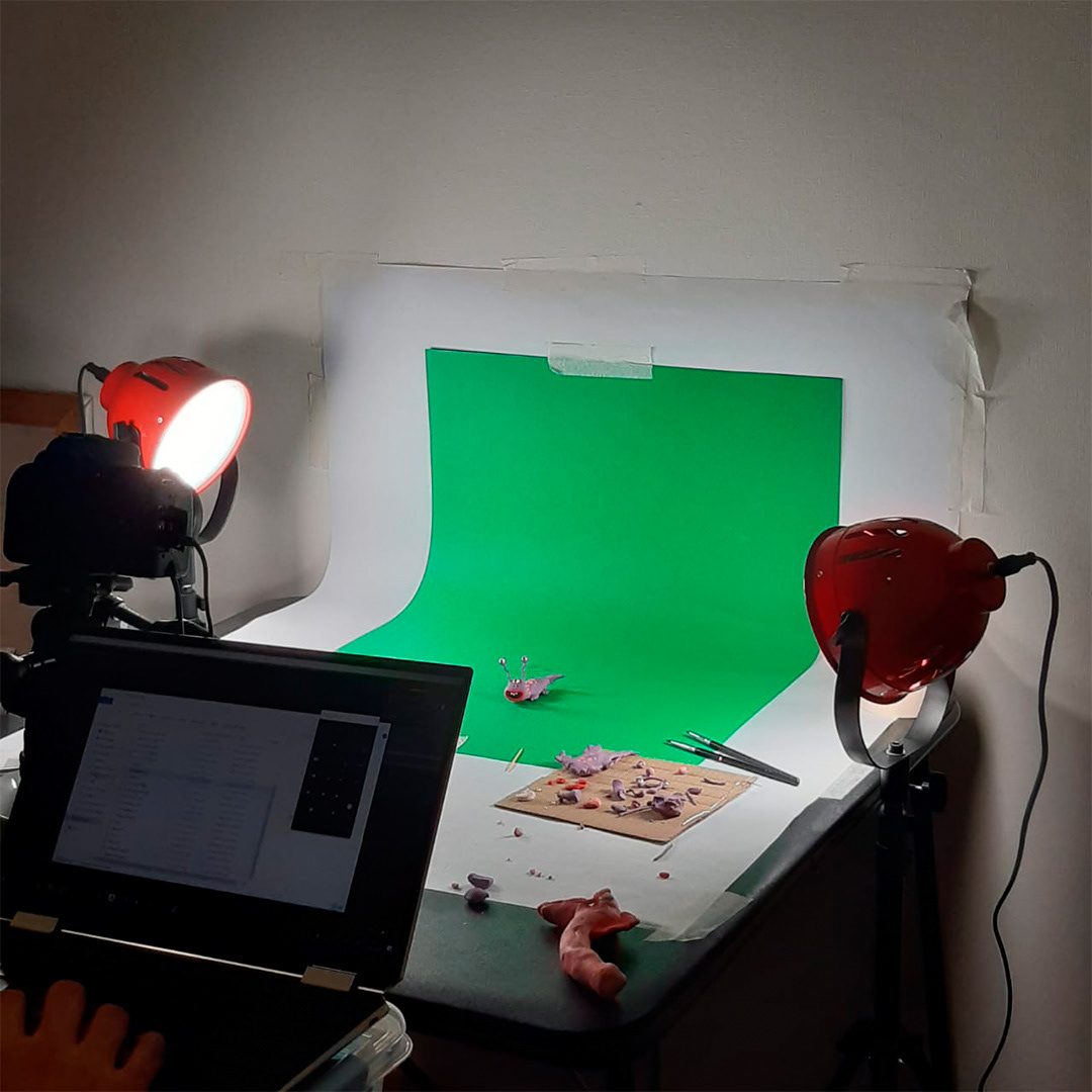 We are working from our studio apartment. Literally half of our living space is dedicated to stop-motion. Fu became very anxious when Ben had to walk around the hot set. Ben had to have many zoom work meetings in the dark because of filming."⠀