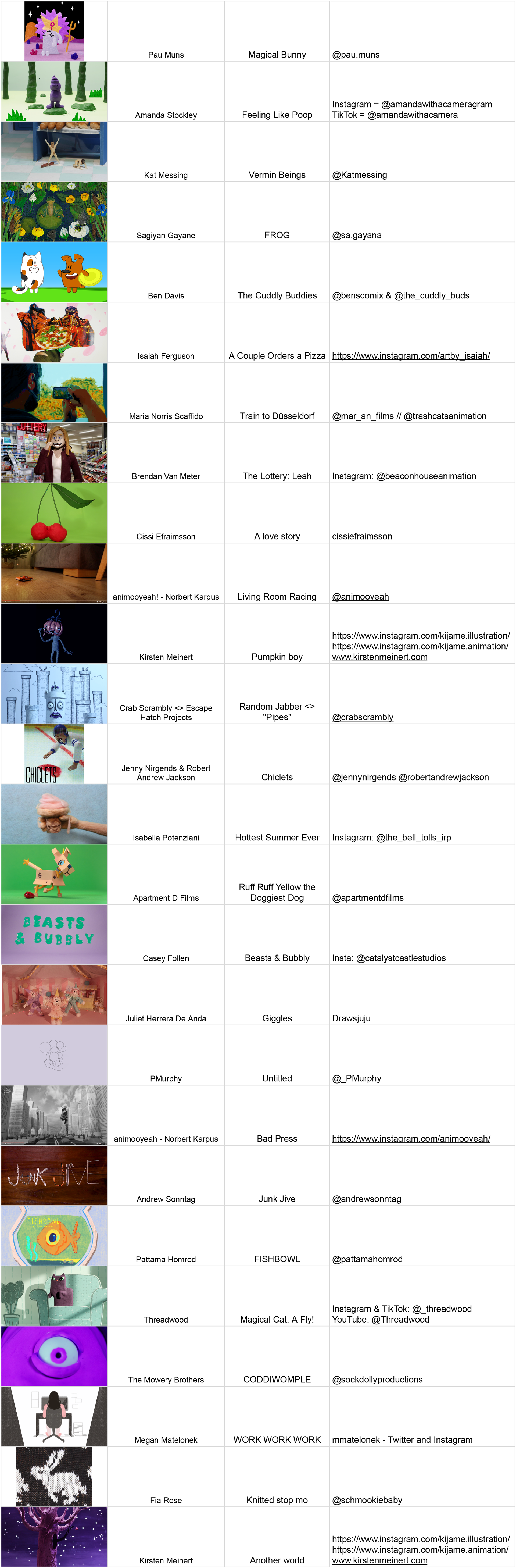 Check out the Animation Wild Card shorts from of our very first in-person event! With the help of our friends at Hot 30 Microshorts, we put together a block of AWC shorts for the event at El Cid on August 28th, 2024.